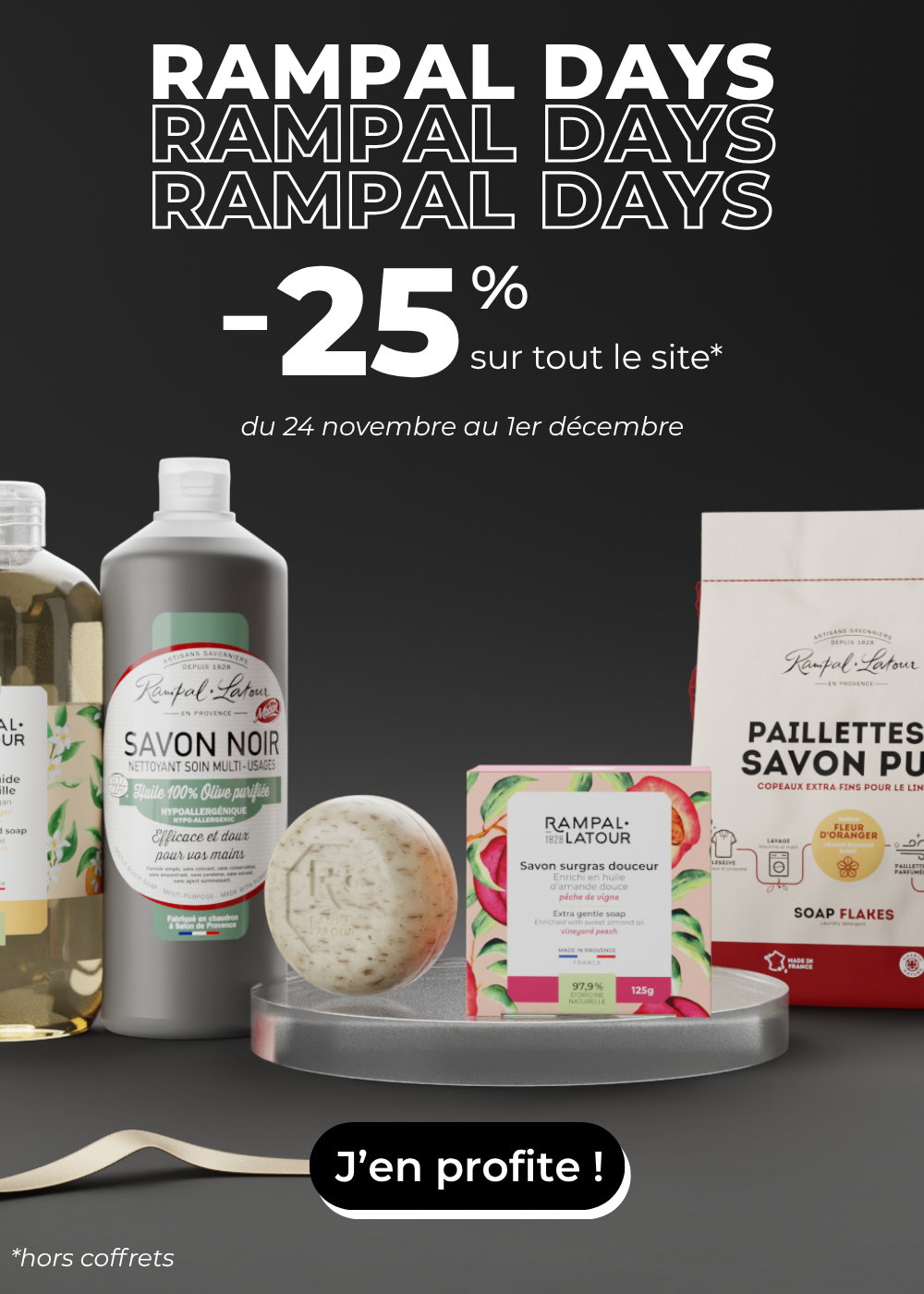 The history of the Rampal soap factory began in 1828 when Pierre Rampal became Master Soapmaker at the Court-de-Payen soap factory in Marseille. From then on, 5 generations of Master Soapmakers succeeded him. Among them, his grandson Pierre Rampal, who received gold medals at the Universal Exhibition in 1900. He settled in Salon de Provence, with the opening in 1907 of the ''Rampal-Fils'' soap factory. at 71, rue Félix Pyat. 1 century later, René Rampal, grandson of Pierre Rampal, passed on his artisanal soap factory ''Rampal Patou'' to Jean-Louis Plot. A new brand is born: ''Rampal Latour'' , guardian of an authentic ancestral know-how. Created in 2008 at Salon de Provance, the range of certified organic shower shampoos won an award at the New York international trade fair, ''New York Gift Show'' in 2010.