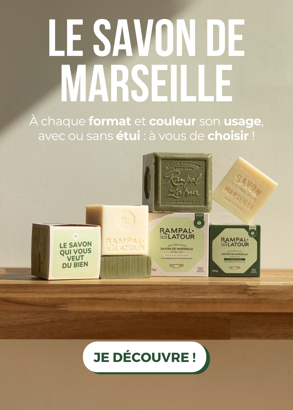 Since 1828, Rampal Latour has had the know-how of making real Marseille soap. Our Marseille soap with olive or white oil is cooked in our cauldrons in Salon de Provence, respecting the traditional and authentic “Marseillais” process. Anxious to improve the quality of our soap and the ecological footprint of our soap factory, we have developed, after 3 years of research and 2 patent filings, an improved manufacturing technique, allowing to use 4 times less water and 7 times less energy for its manufacture. In addition, this patented process improves the moisturizing and protective properties of our Marseille soap, thanks to the natural glycerin that it now retains during saponification. A Rampal Latour exclusive. And all this, while keeping our traditional way of manufacturing.